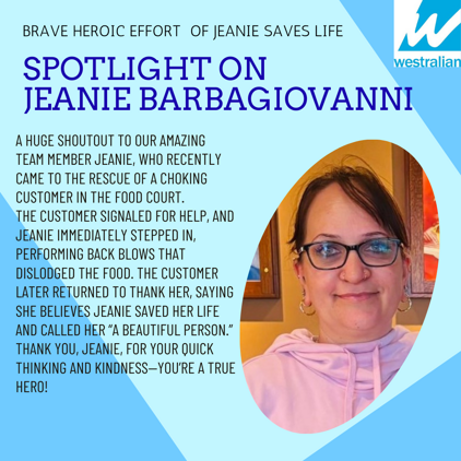 This week, we’re proud to shine the spotlight on one of our incredible team members, Jeanie, whose quick thinking and calm response made a life-saving difference.